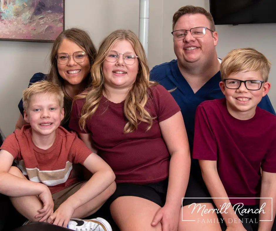 The family behind it all at Merrill Ranch Family Dental! π Dr. Phelps, his wife Jenni and their 3 beautiful kids. You already know they have the perfect smile at all times π¦· (and they certainly brush their teeth)!! π