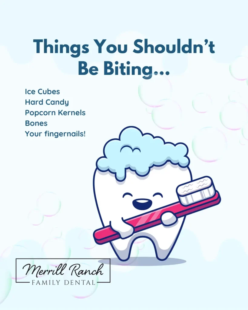 These things are going to damage your teeth and can cause fractures and cracks! Then, you’ll have to come in and see us and our guess is that you’d prefer to stay out of the dentist’s office (and out of pain!). Stick to food that’s meant to be chewed — your teeth will thank you! 🦷